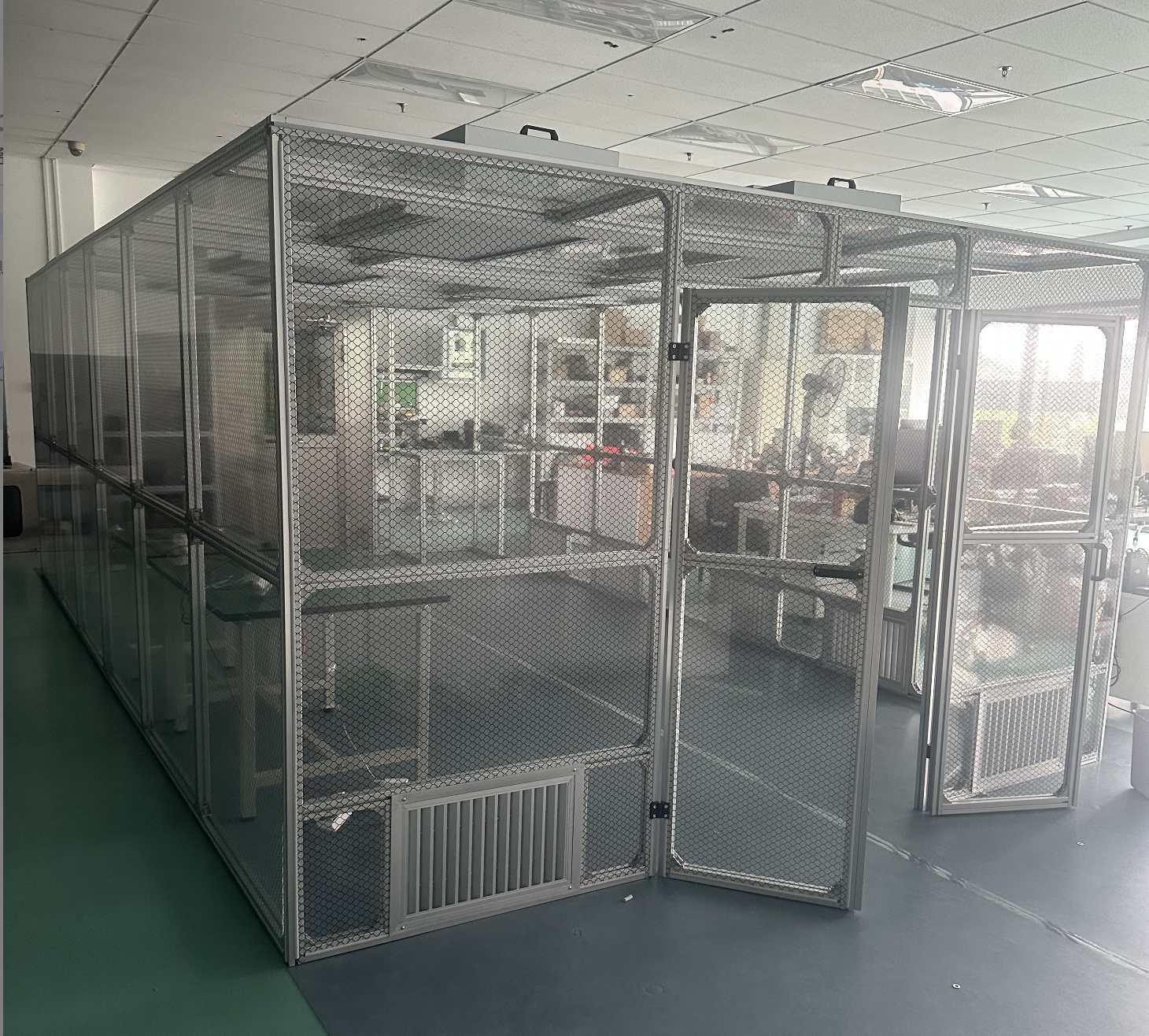常规FFU简易洁净棚(铝型材框架+网格帘/亚克力围护,非标定制):主流报价约650–1500元/㎡。其中,650元/㎡为铝型材FFU无尘洁净棚的常见基价,1500元/㎡为万级净化无尘棚的标价样例,均支持来图/来样定制。